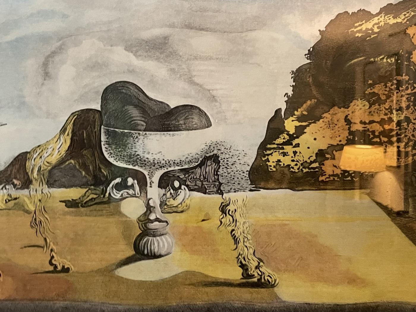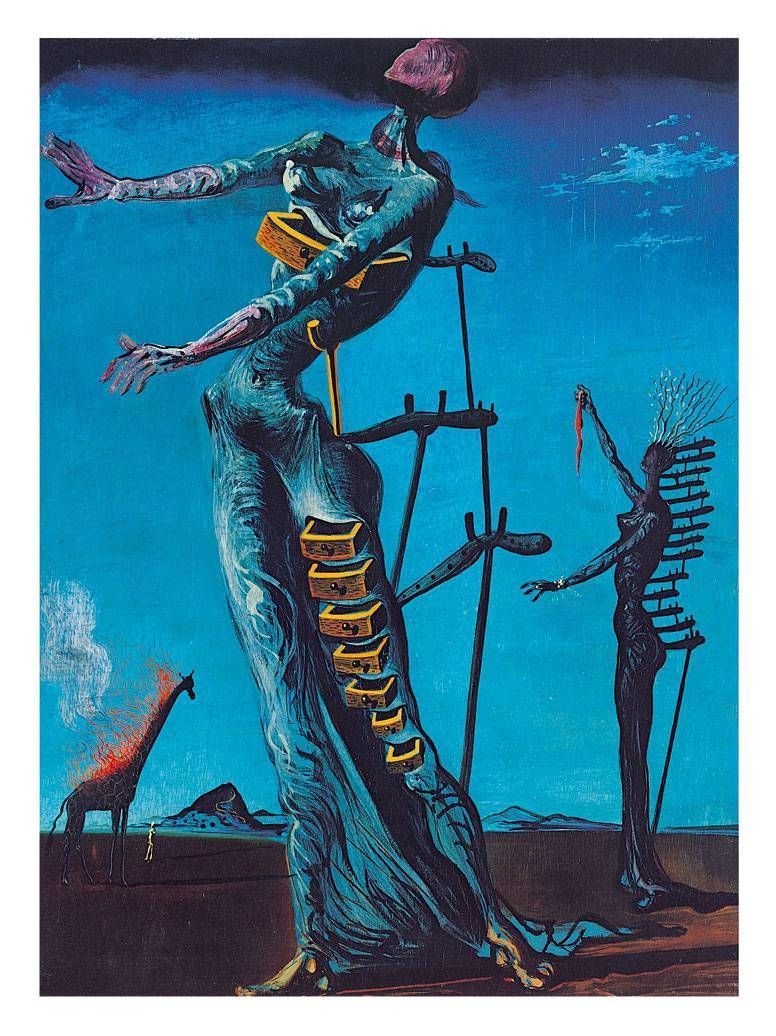 Like a dream, the picture is probably impossible fully to explain. Although harmless, its images are threatening and disturbing, both because they are unexpected and because they are so convincingly real. Dali’s exaggeratedly precise drawing and brushwork and transparently clear colours in the brilliant Mediterranean light create a clinically accurate illusion of reality, which is alarming, amusing and brilliantly inventive.