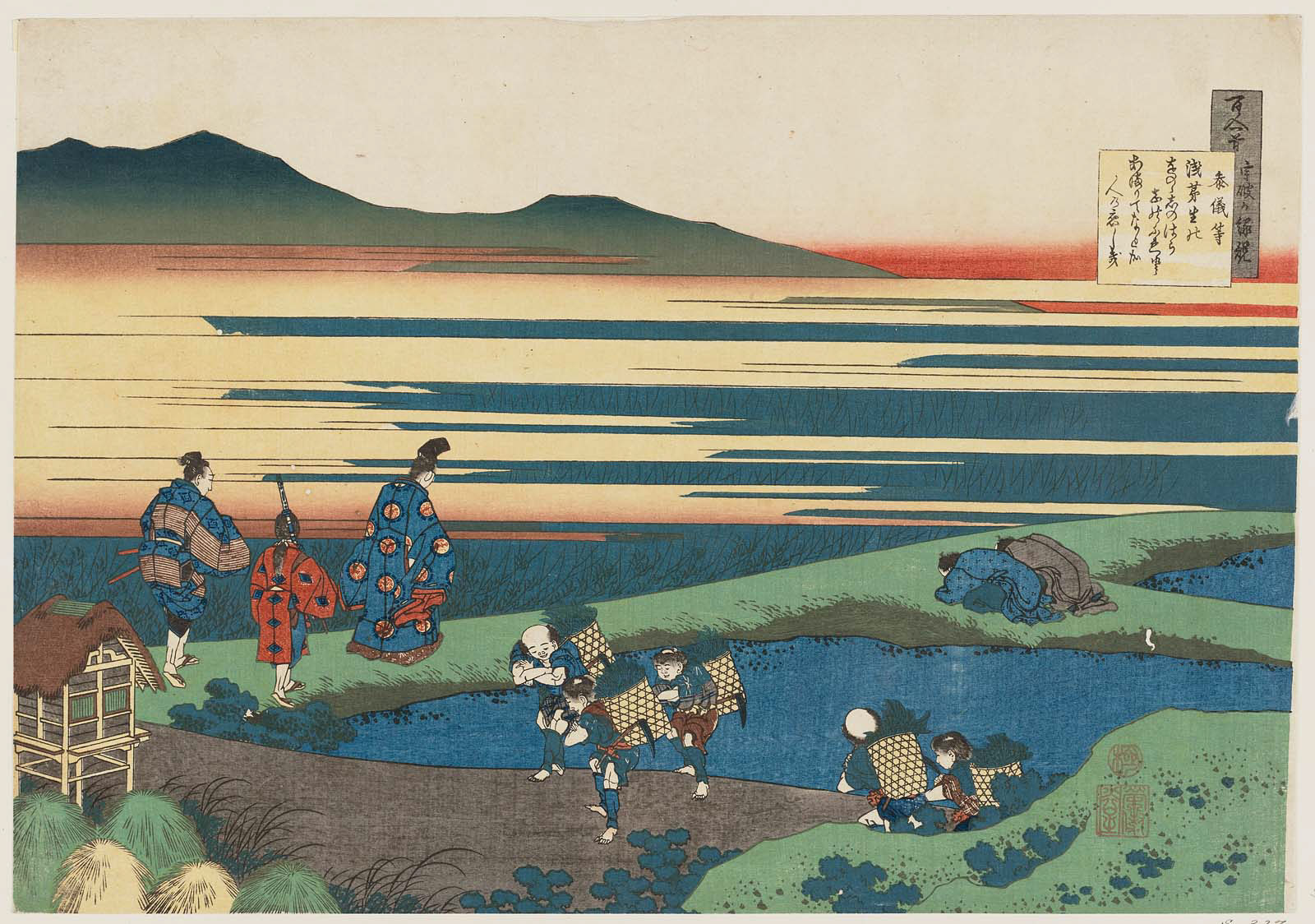 masterpiece of colour printing illustrates a poem by Sanji Hitoshi. Hokusai’s