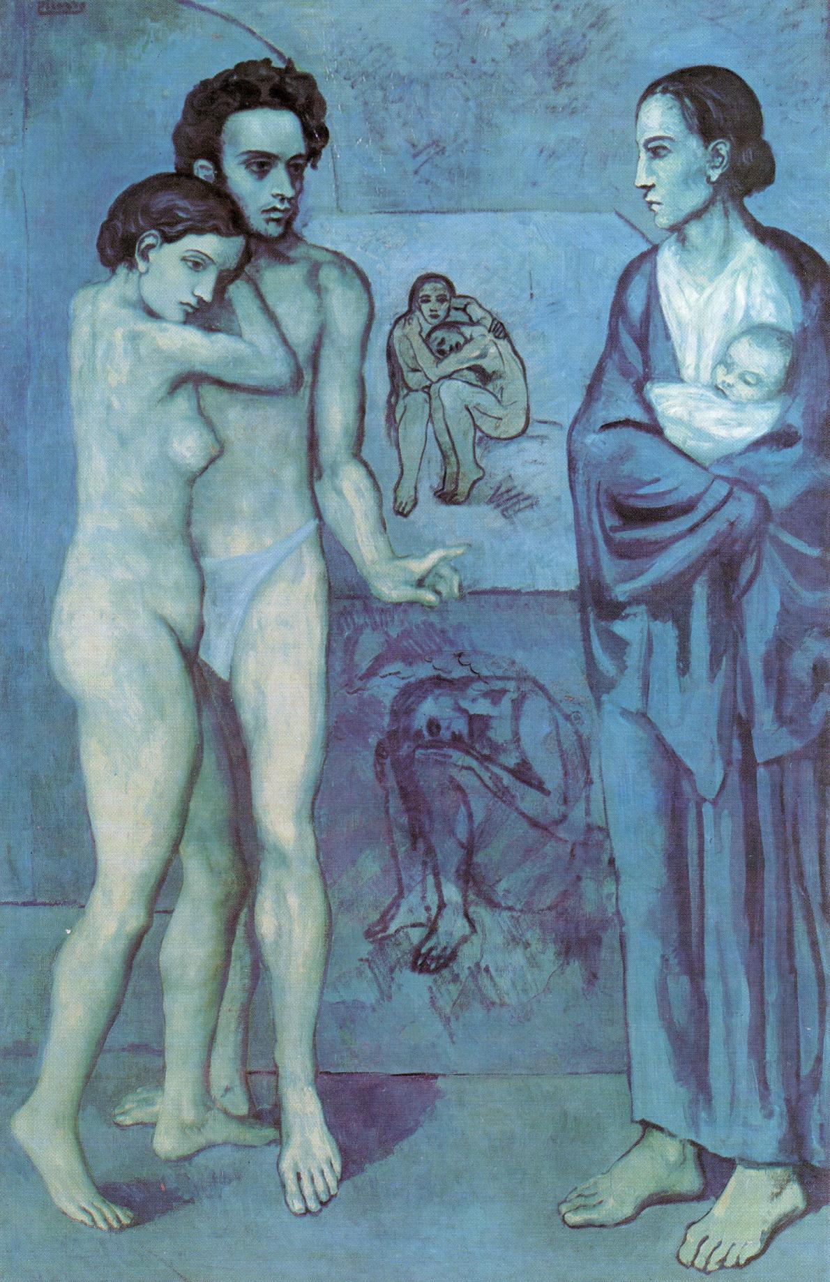His early work is much concerned with poverty. His ‘Blue Period’ — showing the squalor of the Paris streets — produced some of his most famous pictures, and began his immense, lifelong success. His personal life was complicated by a series of mistresses, wives and children whom he used as subjects many times.