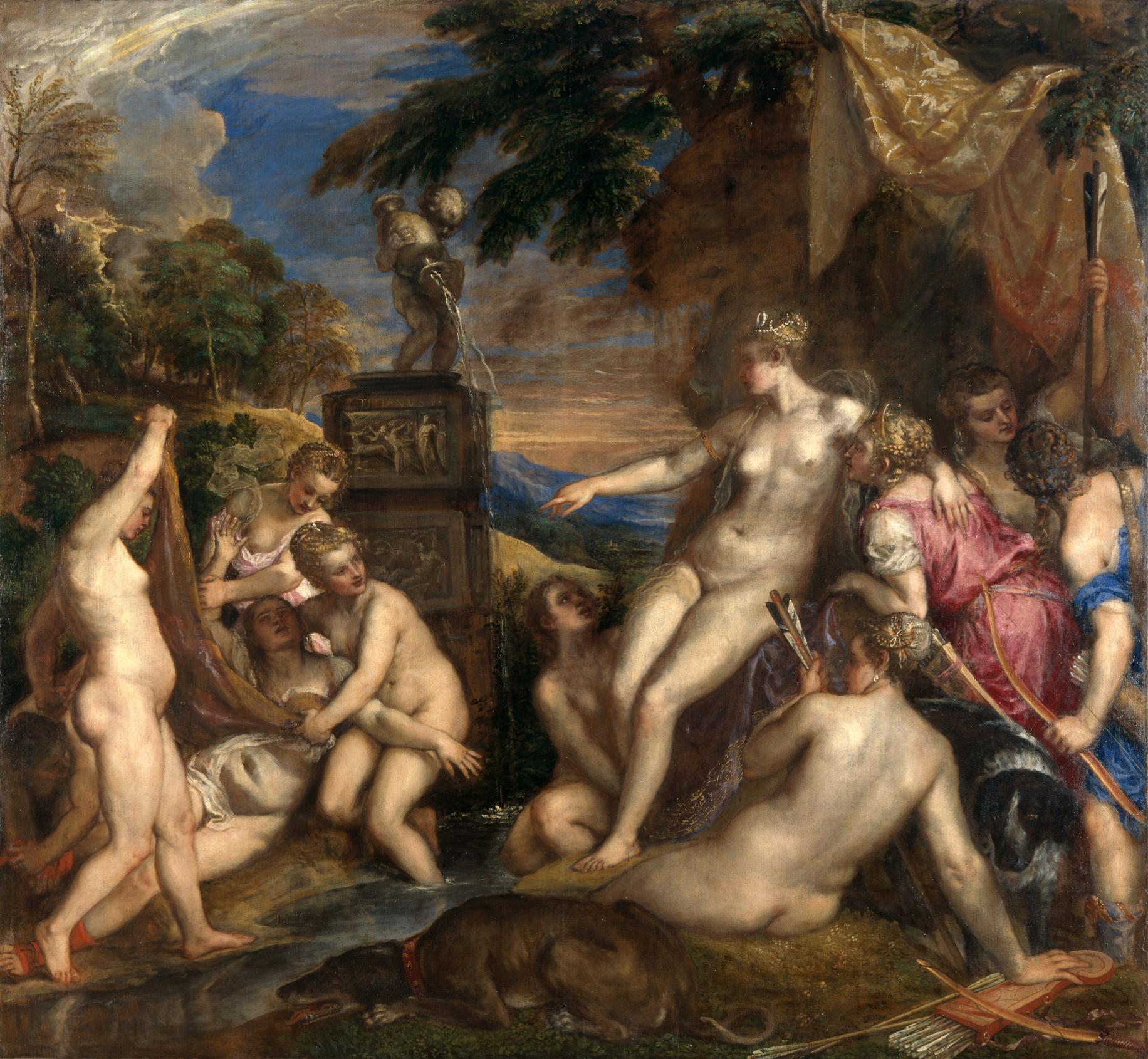 Titian was one of the most successful and productive painters in history. He lived in Venice where he was trained in the studio of Giovanni Bellini. On Bellini’s death, in 1516, Titian became official painter to the Venetian Republic, and dominated European painting for much of the sixteenth century. He worked for the ducal families of Ferrara and Mantua, for Francis 1 of France, Philip 11 of Spain, for the Holy Roman Emperor Charles v, and for Pope Paul ill, who made him a count palatine. From his highly organized studio in Venice several thousand paintings emerged during his long and energetic career: mainly altarpieces, portraits and mythological scenes, many of the latter depicting the female nude.