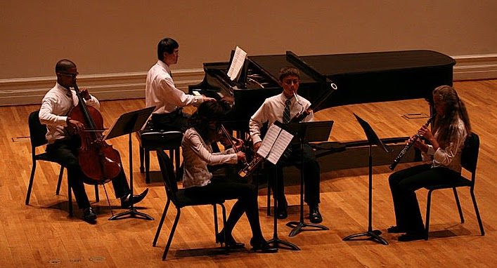 The remaining combinations are: violin and piano duo, cello and piano duo, string trio (violin, viola and cello), string quintet (cas string quartet with either an added viola or cell), piano quintet (string quartet and piano), string sextet (two violins, two violas and two cellos) an wind quintet (flute, oboe, clarinet, horn and bassoon). In addition to these are other more diverse combinations for which various composers felt inspired to write.